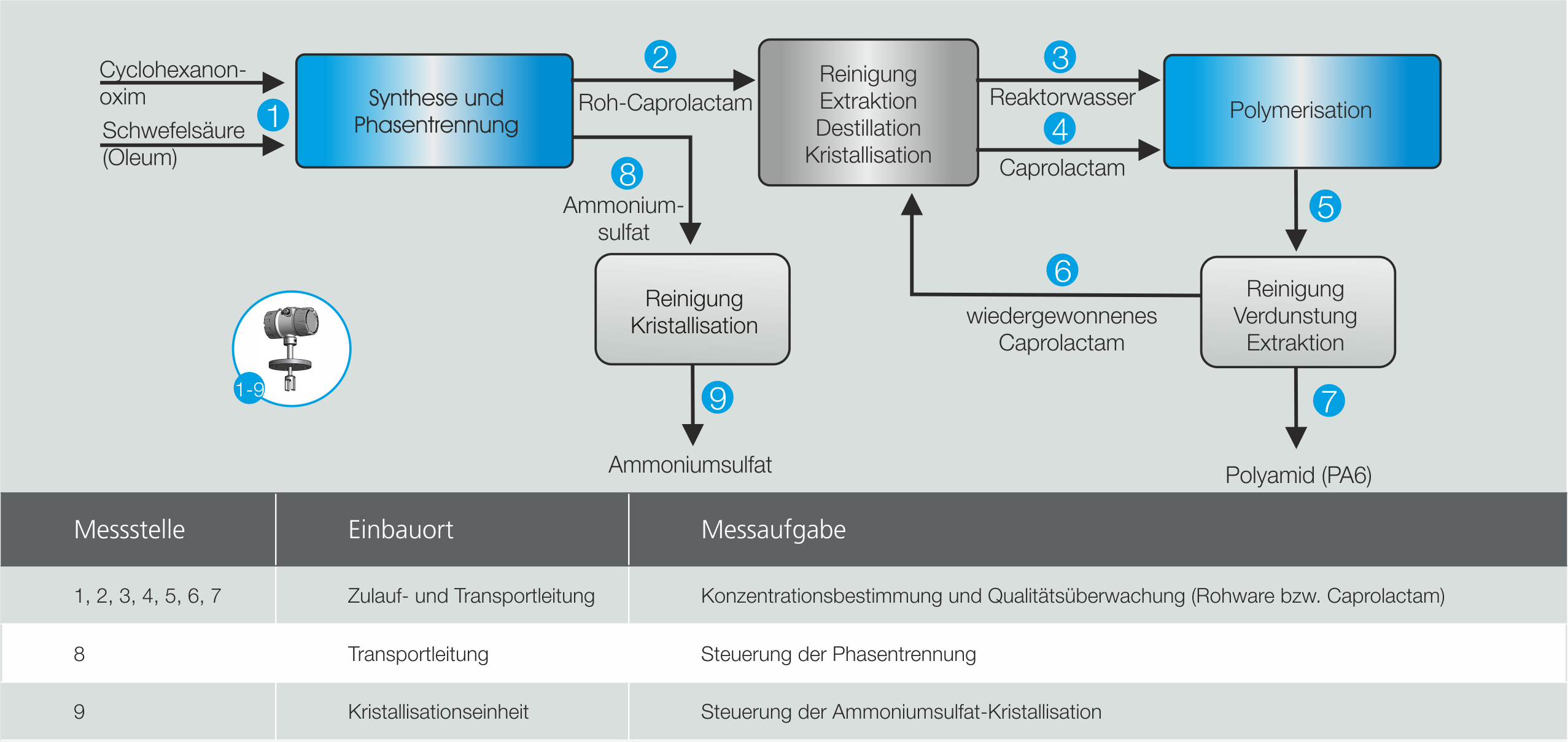 Schwankende Konzentrationen wirken sich direkt auf die Produktqualität aus. Beispielsweise die Produktion von hochwertigem Polyamid 6 (Nylon) erfordert eine präzise Kontrolle der Caprolactam-Konzentration - häufig in komplexen, mehrstufigen Prozessen mit extremen Bedingungen.