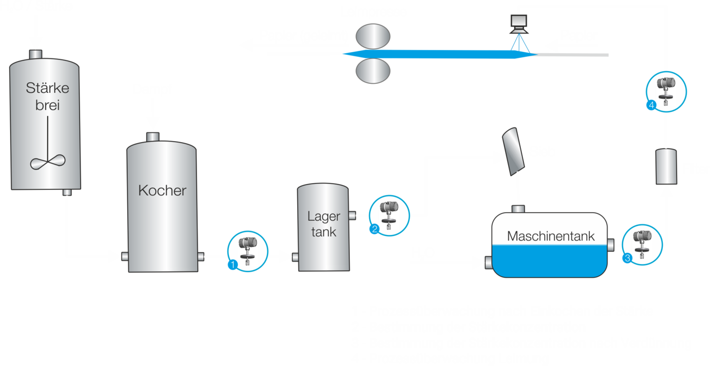 In der Papierherstellung ist das Leimen ein kritischer Prozessschritt. Dabei werden dem Papier gewünschte Eigenschaften wie Reißfestigkeit und Trockenfestigkeit verliehen. Dadurch ist die Prozessüberwachung besonders wichtig, um die kostenintensiven Ressourcen so effizient wie möglich zu nutzen.