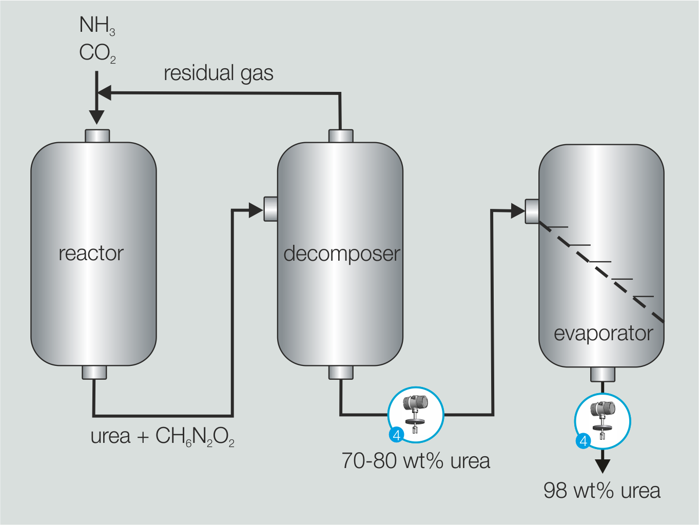 Precise concentration measurements along the urea synthesis contribute to energy savings and consistent product quality.